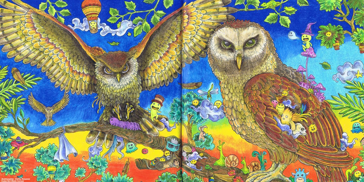 Different pencils, mixed brands. I had so much fun colouring those owls! Another surprising image from Animorphia, book by Kerby Rosanes.