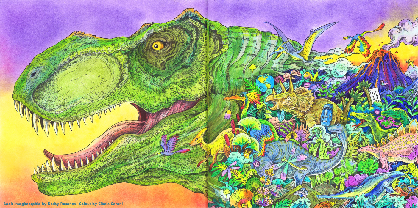 I really enjoyed working on this illustration. The dinosaur theme is full of opportunities to use your imagination! I used Derwent Coloursoft and Prismacolor Premier pencils in this drawing. Mungyo Gallery soft pastels for the background. White details done with Signo Uni-Ball gel pen. To complete, some fixative to assure soft pastels stay in place.