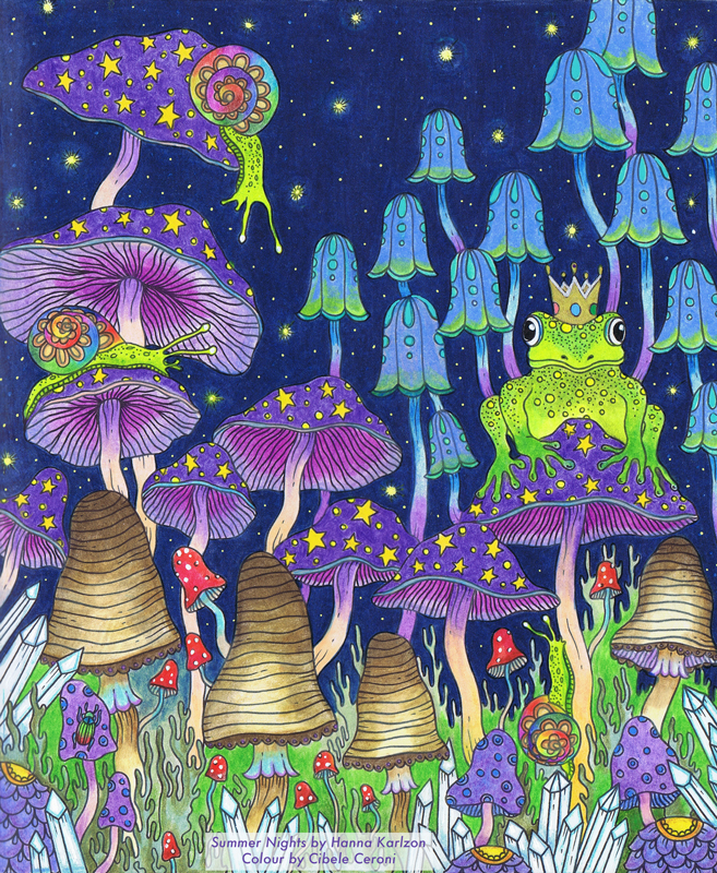 This enchanting illustration by Hanna Karlzon was great to colour! This is from the book Summer Nights. I used mostly Castle Art Coloured Pencils for the drawings and Derwent Coloursoft in the background and larger areas. I also used Caran D’Ache colourless blender. Little details of Posca Pen to complete the magic!