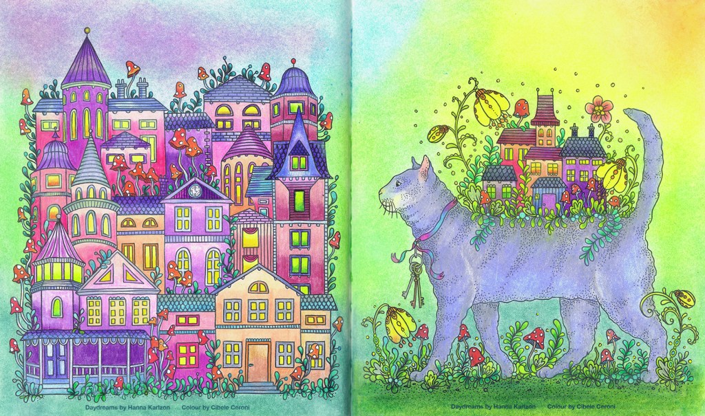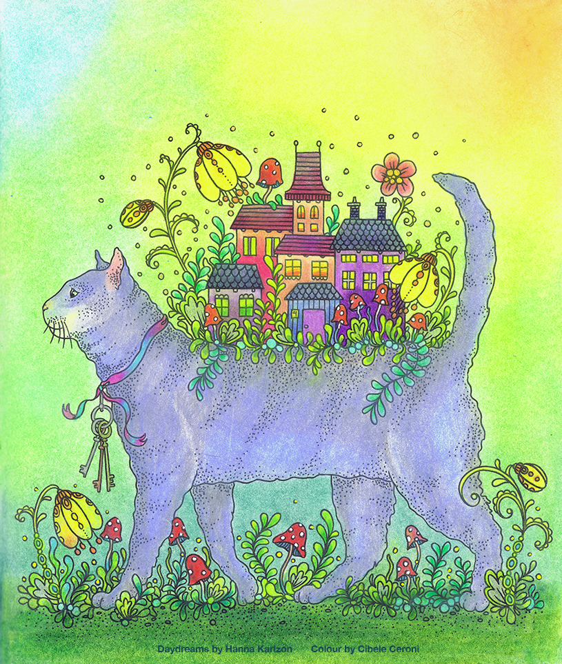 This is a double page from the book Daydreams by Hanna Karlzon. I had so much fun colouring this page!