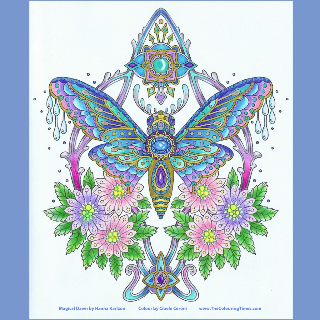 This precious illustration is from Magical Dawn book by Hanna Karlzon. I coloured this page with Holbein Coloured Pencils and Coliro Metallic Watercolours. No background, I like the paper’s creamy hue and it looks good with the colours I’ve chosen for the moth – sometimes it works just fine to focus on the illustration.