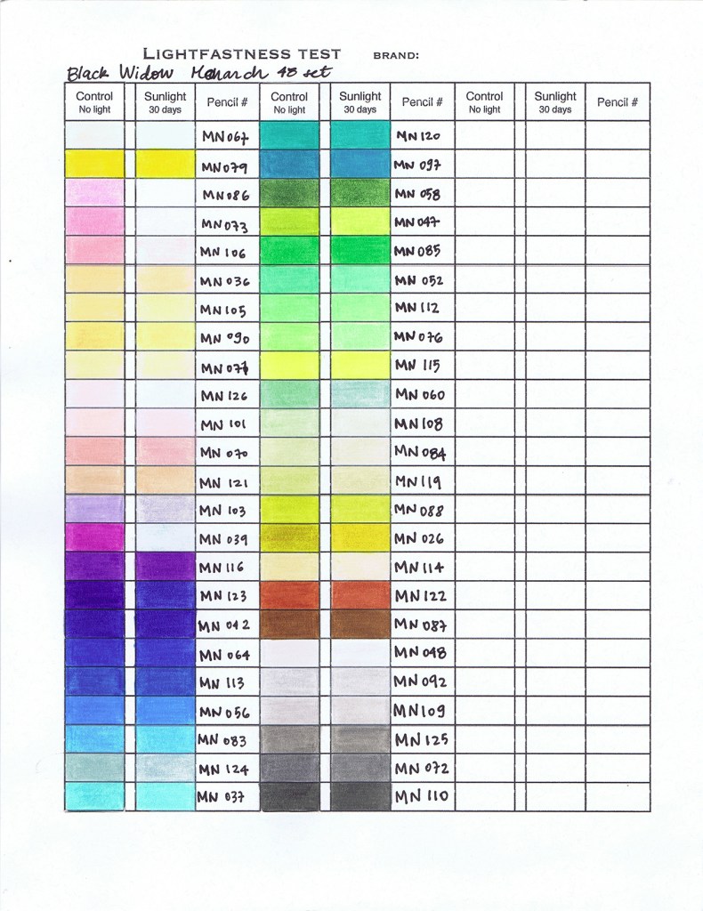 Lightfastness – Popular Pencils Tested – Black Widow Results
