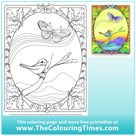 New Printable! Bird and Oak Tree colouring page