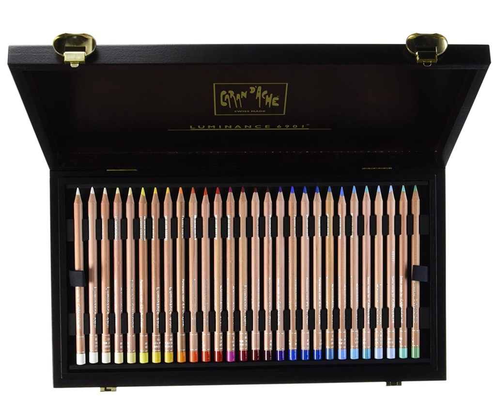 Luminance 80 Gift Set Wooden Box – 76 pencils + 2 blenders and 2 grafwood graphite pencils
