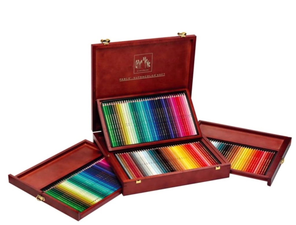 Supracolor + Pablo Caran D’ache 160 Gift Set Wood Box— 80 Supracolor Water-Soluble Colour Pencils & 80 Pablo Permanent Colour Pencils