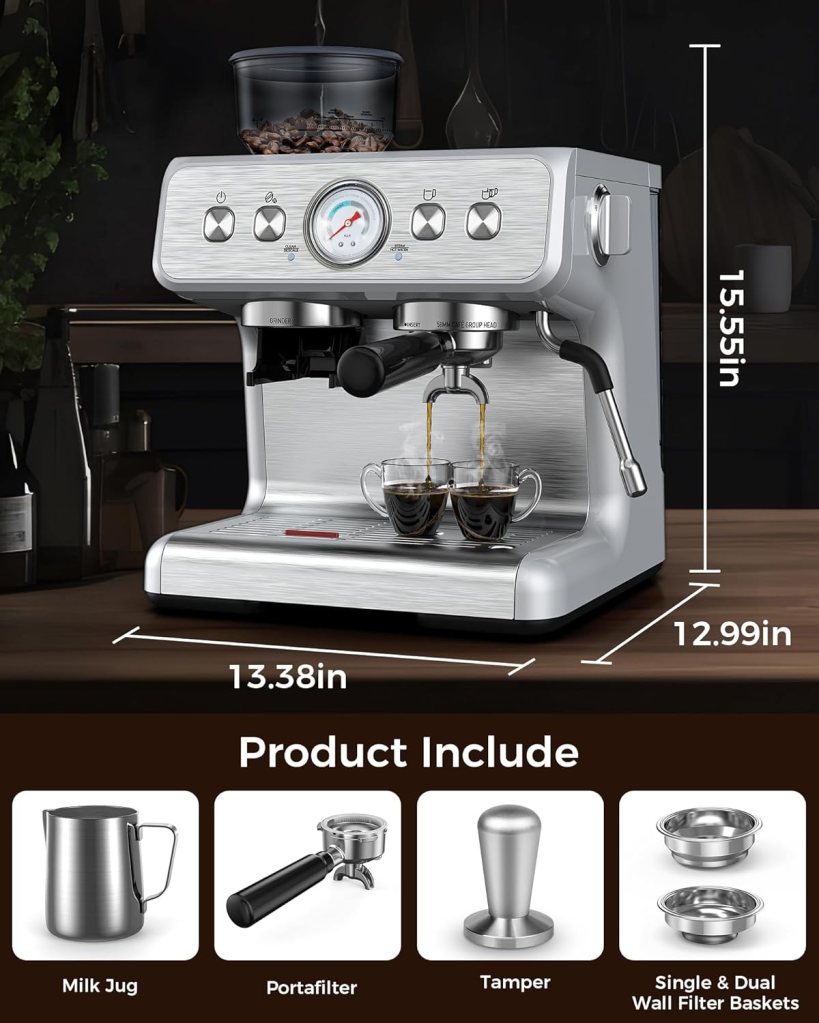 Amazon Associate’s Choice: COWSAR Espresso Machine 15 Bar, Semi-Automatic Espresso Maker with Bean Grinder and Milk Frother Steam Wand, 75 oz Removable Water Tank for Cappuccino, Latte, Stainless Steel