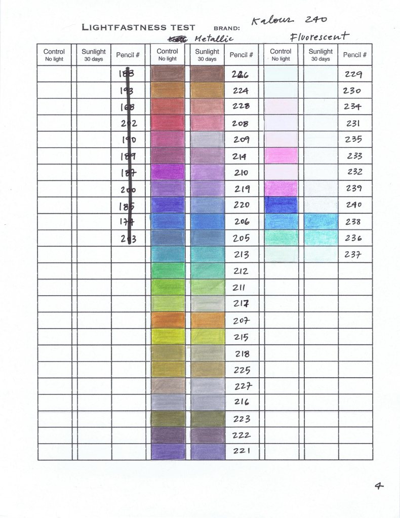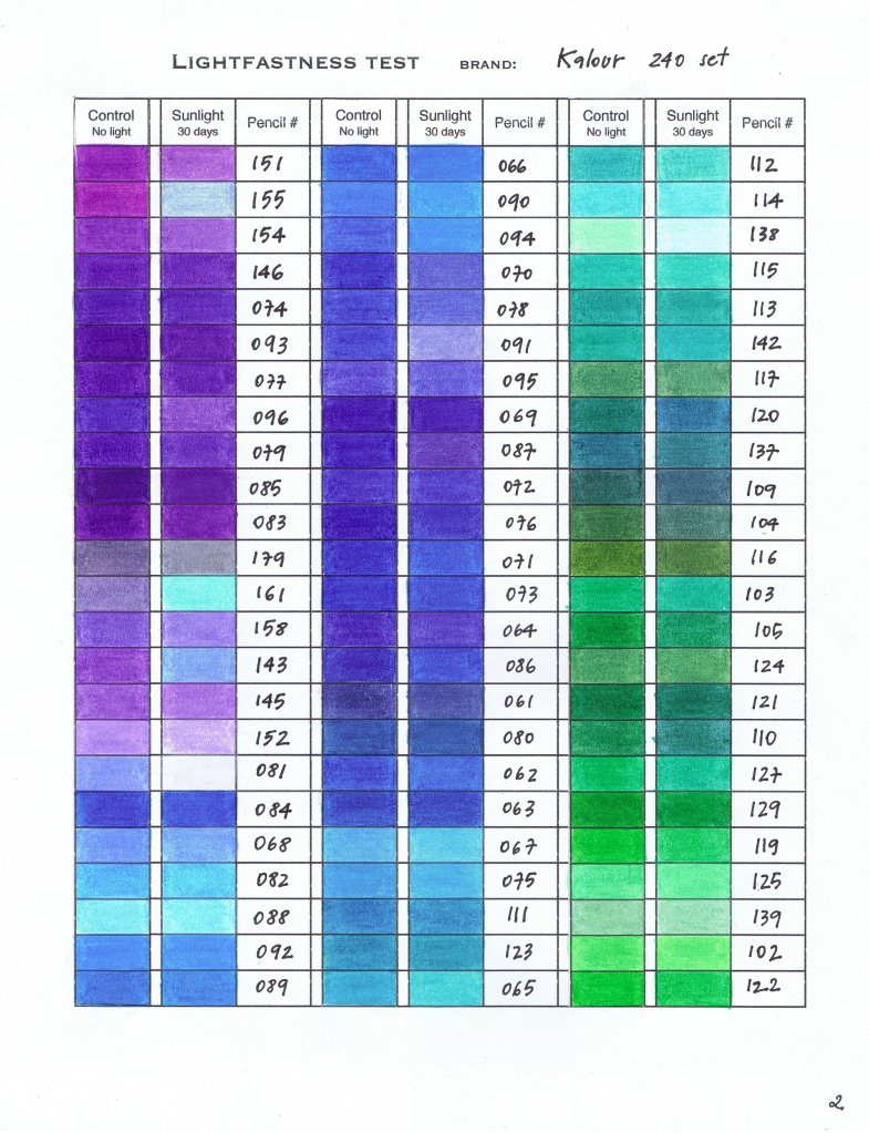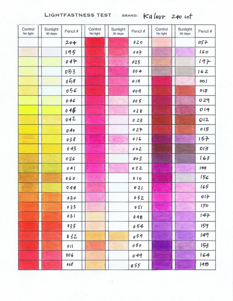 Lightfastness – Popular Pencils Tested – Kalour 240 Results