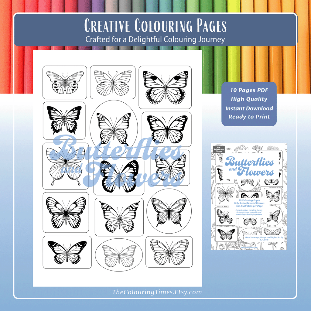 Are you ready for a new creative adventure? I’m so happy to announce of my latest collection of colouring pages, now available on Etsy. Butterflies and Flowers, features 10 artist-designed illustrations that are perfect for unwinding and embarking into a colourful journey!