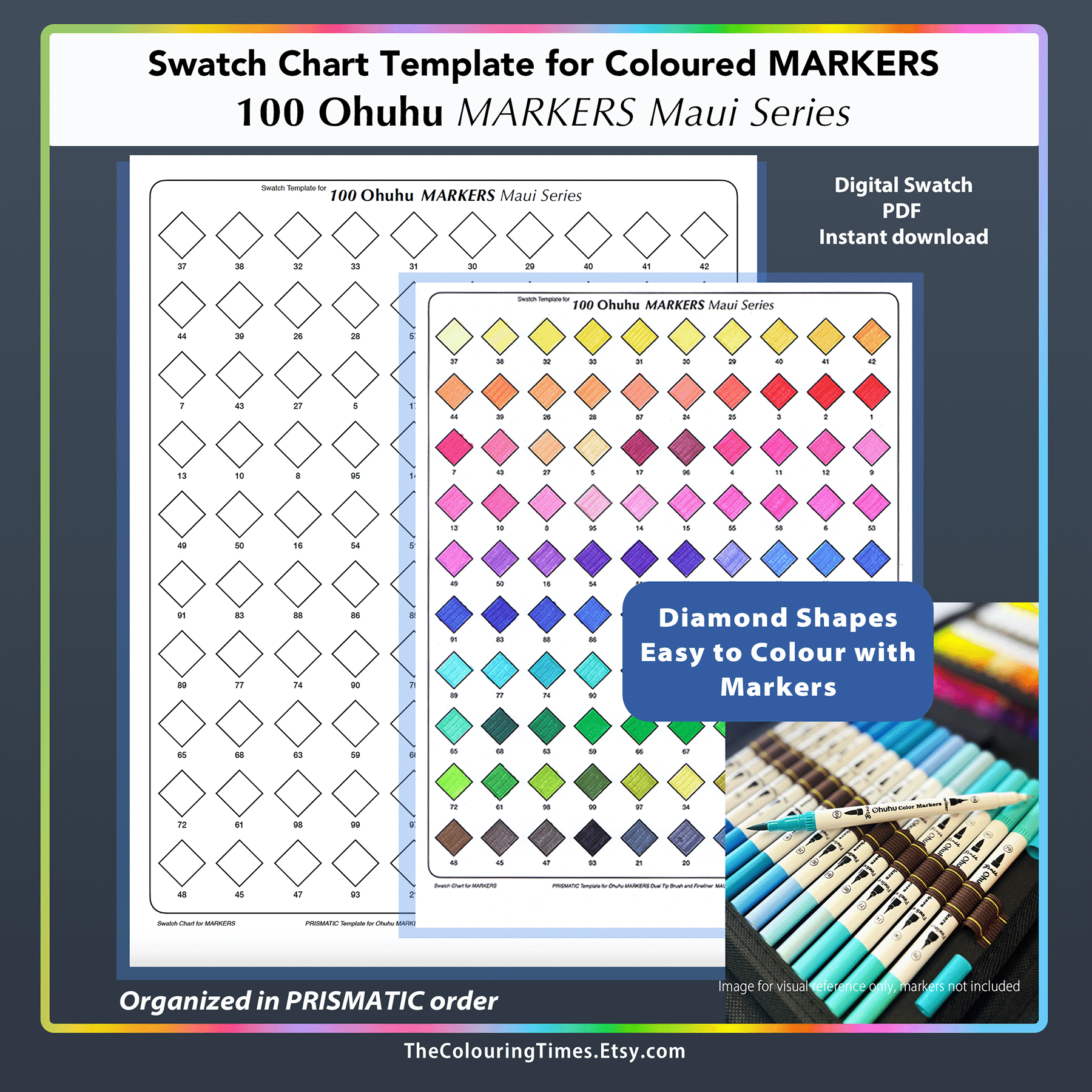 - Swatch Colour Chart for 100 Ohuhu Markers MAUI Series