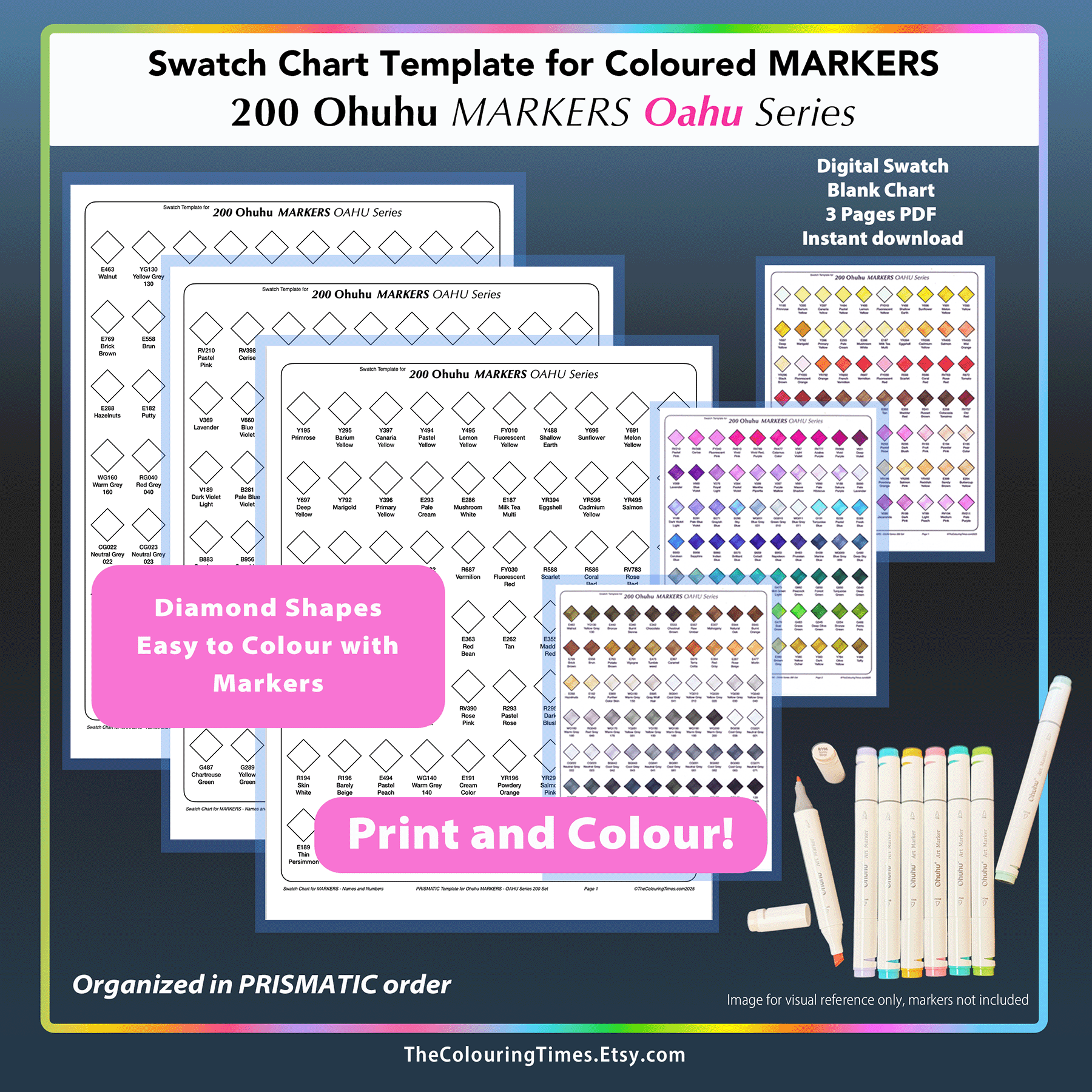- Swatch Colour Chart for 200 Ohuhu Markers OAHU Series