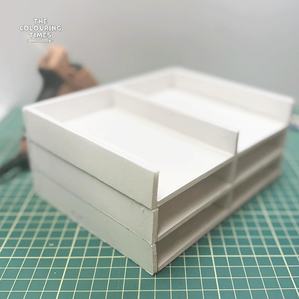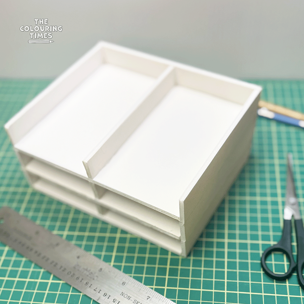 So, inspired by the designs I found, I created my own DIY Marker Storage. Itโs made mostly from white foam board and hot glue, but with a few extra details โ like an outer shell and finishing tape โ it looks tidy, sturdy, and really neat.