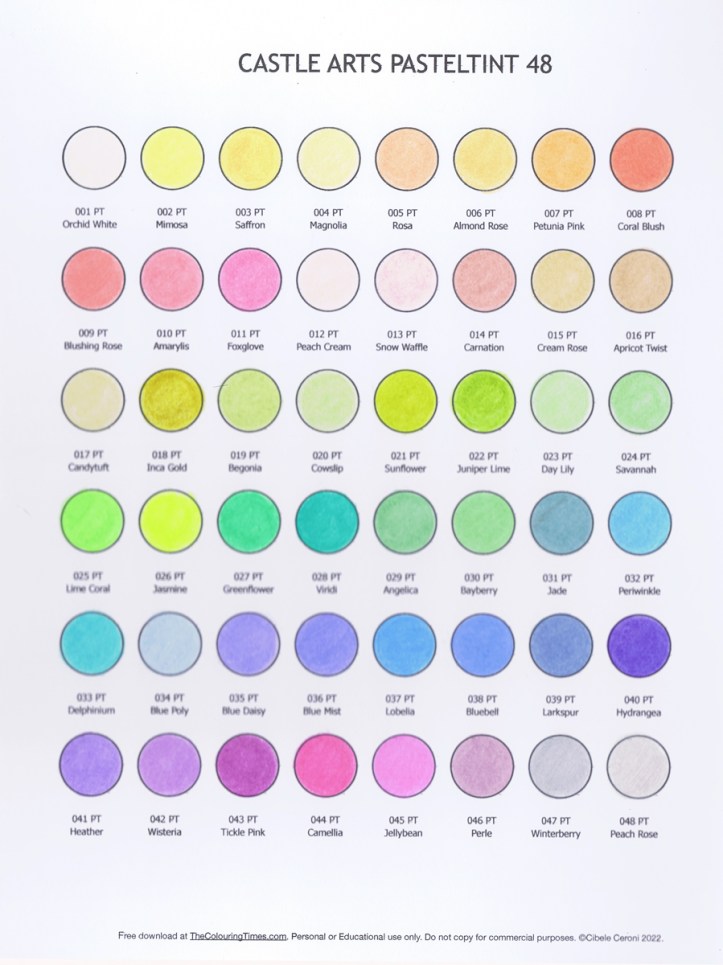 Castle Arts Premium Pasteltint Pencils 48 count – Free PDF Chart