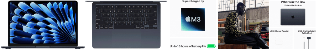Amazon Associate’s Choice: Apple 2024 MacBook Air 13-inch Laptop with M3 chip, Liquid Retina Display and Touch ID. LEAN. MEAN. M3 MACHINE: The blazing-fast MacBook Air with the M3 chip is a superportable laptop that sails through work and play.