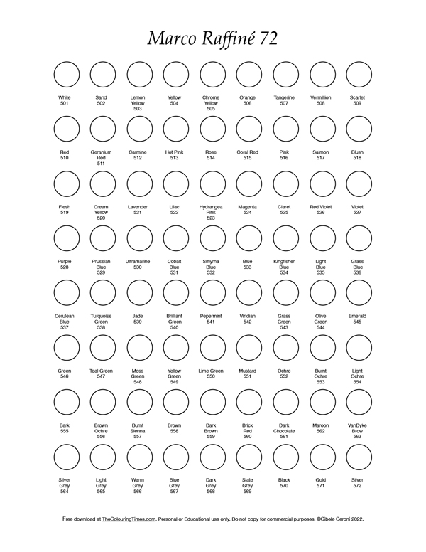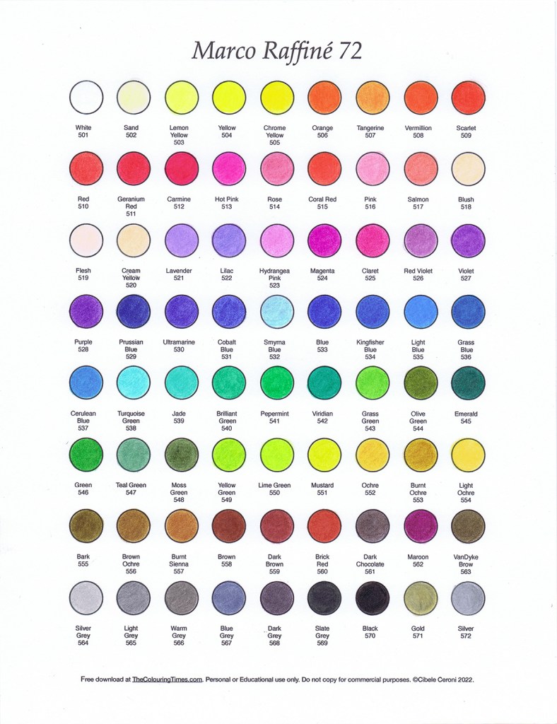 I’ve created a colour guide for Marco Raffiné Coloured Pencils 72 set. Pencils are organized in the same order they are in the tin set. I hope you like this one! Happy Colouring 🙂