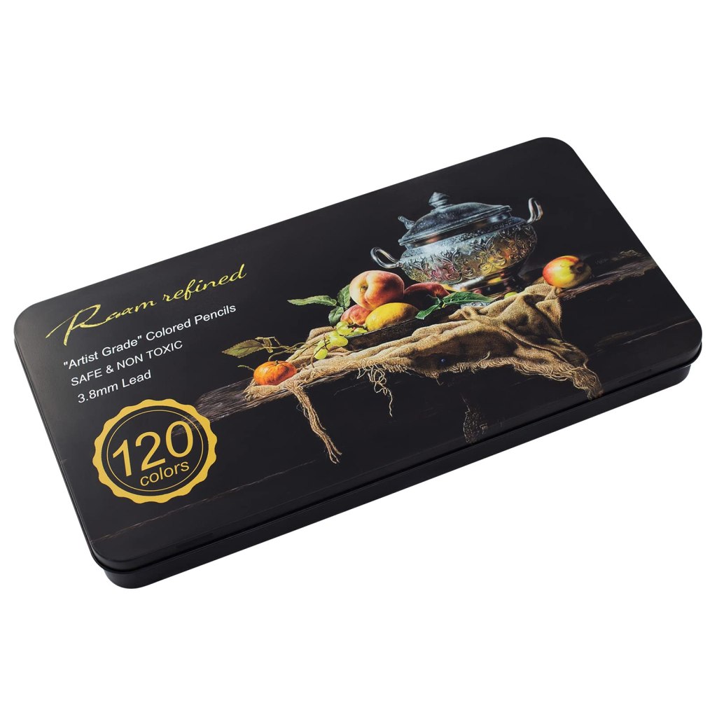Raam Refined Coloured Pencils arrive in a nice tin, organized in three layers. The set with 120 pencils offers a large choice of tonalities. They look really good and have a coloured round barrel, printed with name and number. I really like this set because pencils are easy to hold and soft to colour with. The colours are rich and vibrant, and now I know most will not fade easily. Raam Refined is a smart choice between student coloured pencils: the great majority of colours did well in my test, pencils are fun to work with and they have a really friendly price, being one of the best budget Brands on the market.