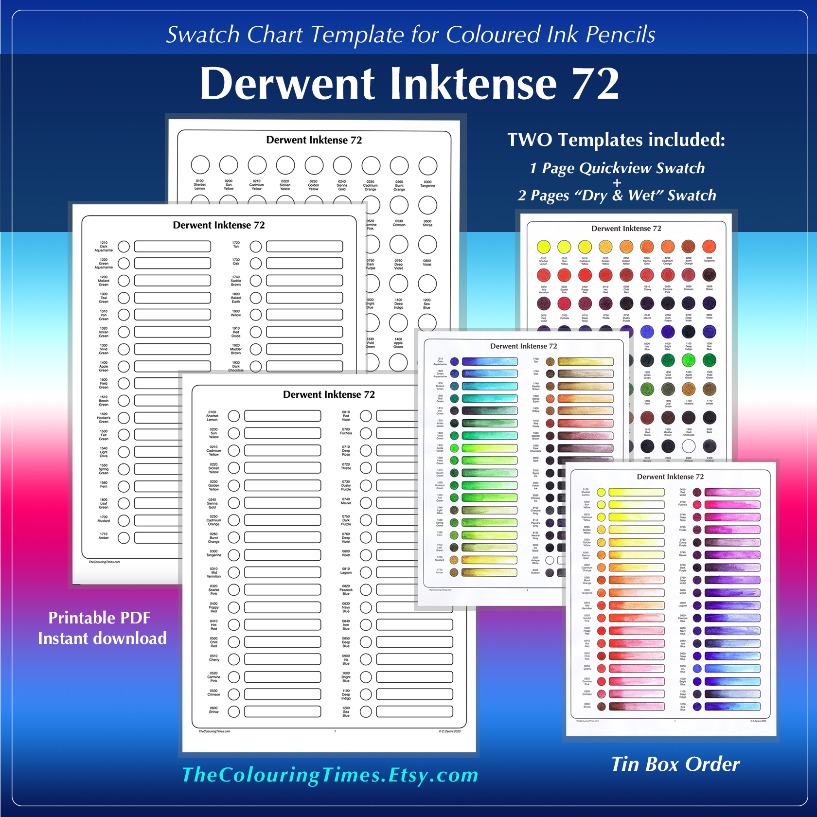 - PDF Swatch Pack for 72 Inktense Derwent Coloured Pencils Set