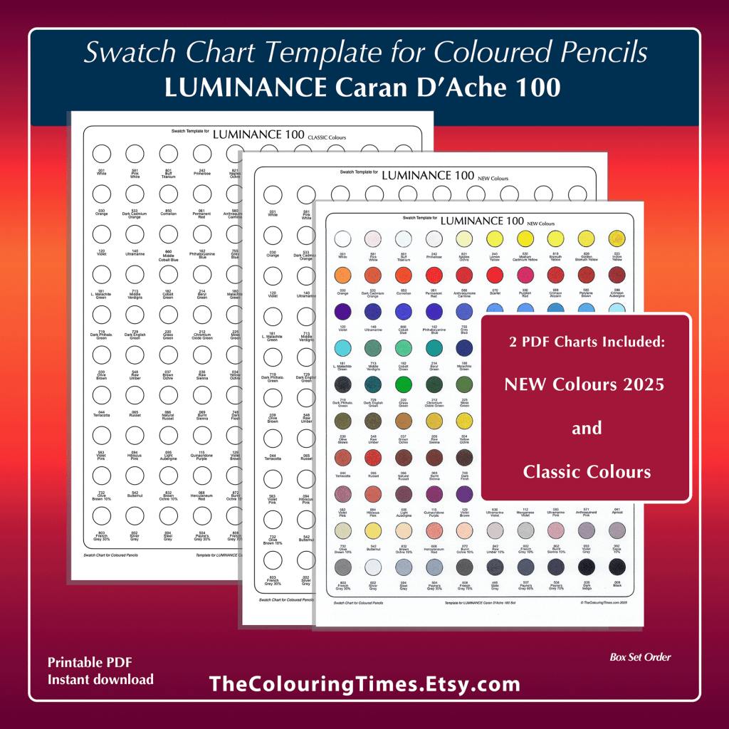- PDF Swatch Pack for 100 Luminance Caran D’Ache Permanent Coloured Pencils Set