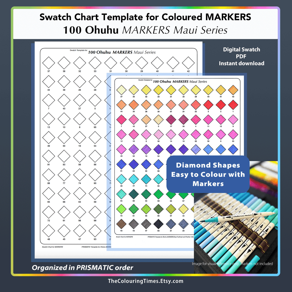 - PDF Swatch Pack for 100 Ohuhu MAUI Markers Set