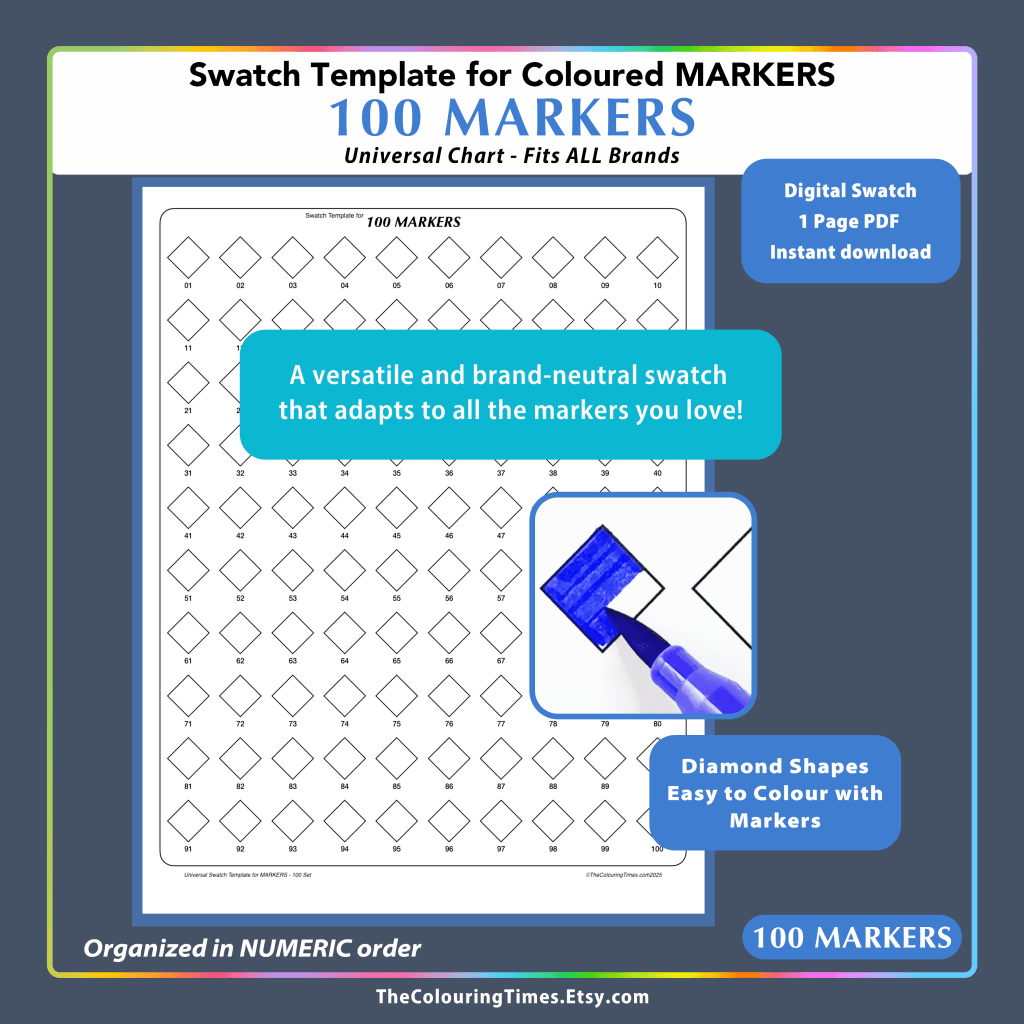 - PDF Swatch Pack for 100 Markers – Marker Organizer – fits all brands