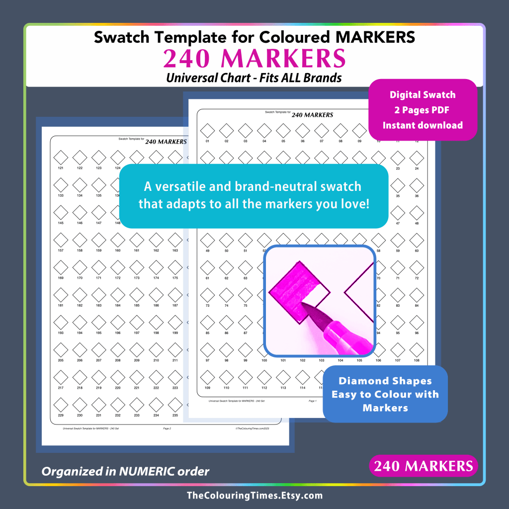 - PDF Swatch Pack for 240 Markers – Marker Organizer – fits all brands