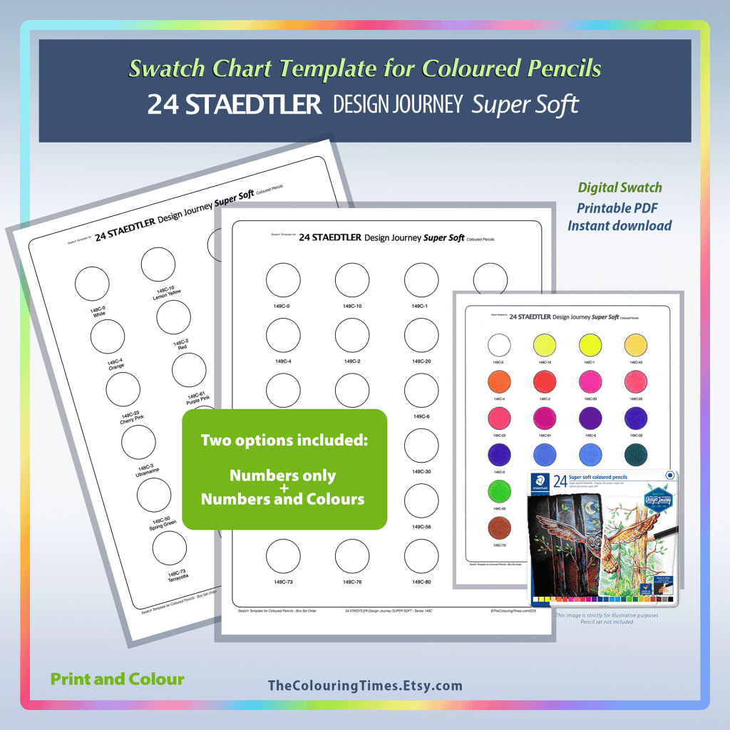 - PDF Swatch Pack for 24 STAEDTLER Design Journey Soft Core Coloured Pencils Set