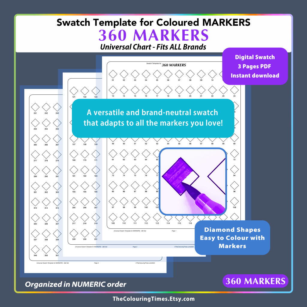 - PDF Swatch Pack for 360 Markers – Marker Organizer – fits all brands