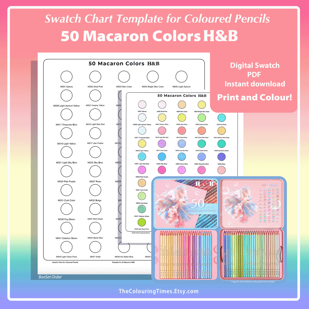 - PDF Swatch Pack for 50 Macaron Colors H&B Coloured Pencils Set