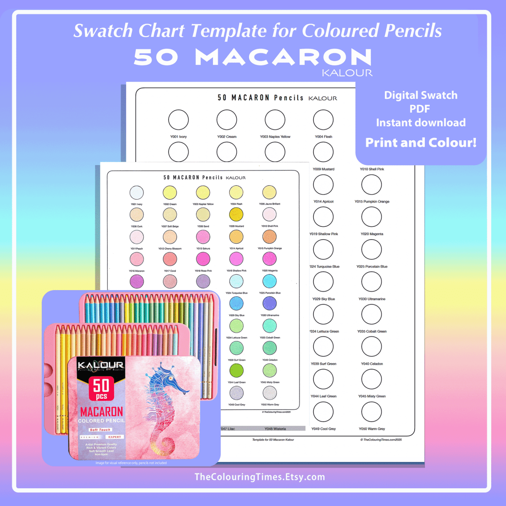 - PDF Swatch Pack for 50 KALOUR Macaron Coloured Pencils Set soft core