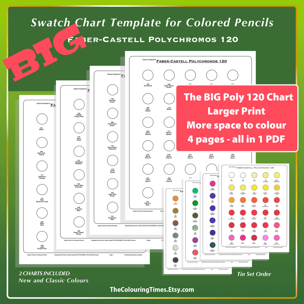 - PDF Swatch Pack for 120 Polychromos Faber-Castell Artist Coloured Pencils Set-BIG Chart