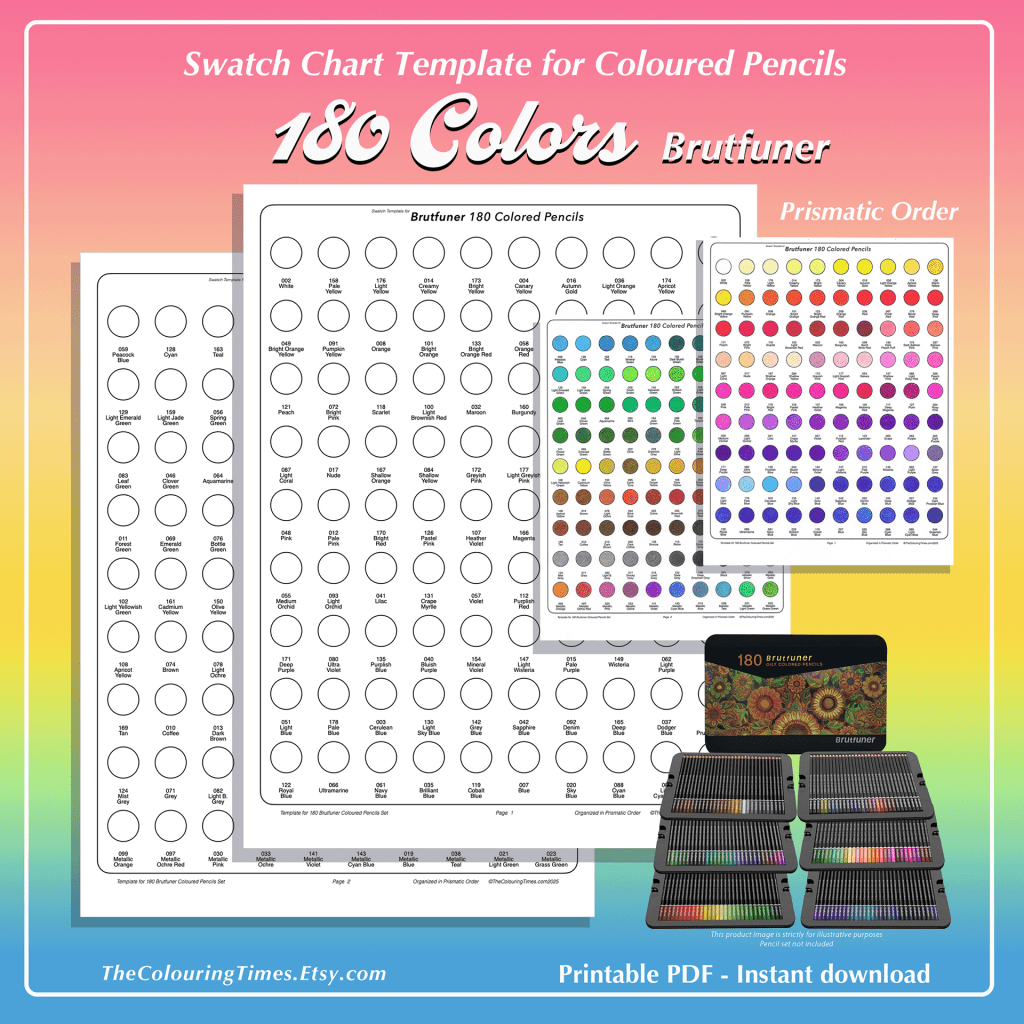 - PDF Swatch Pack for 180 Colors Brutfuner Colored Pencils Set