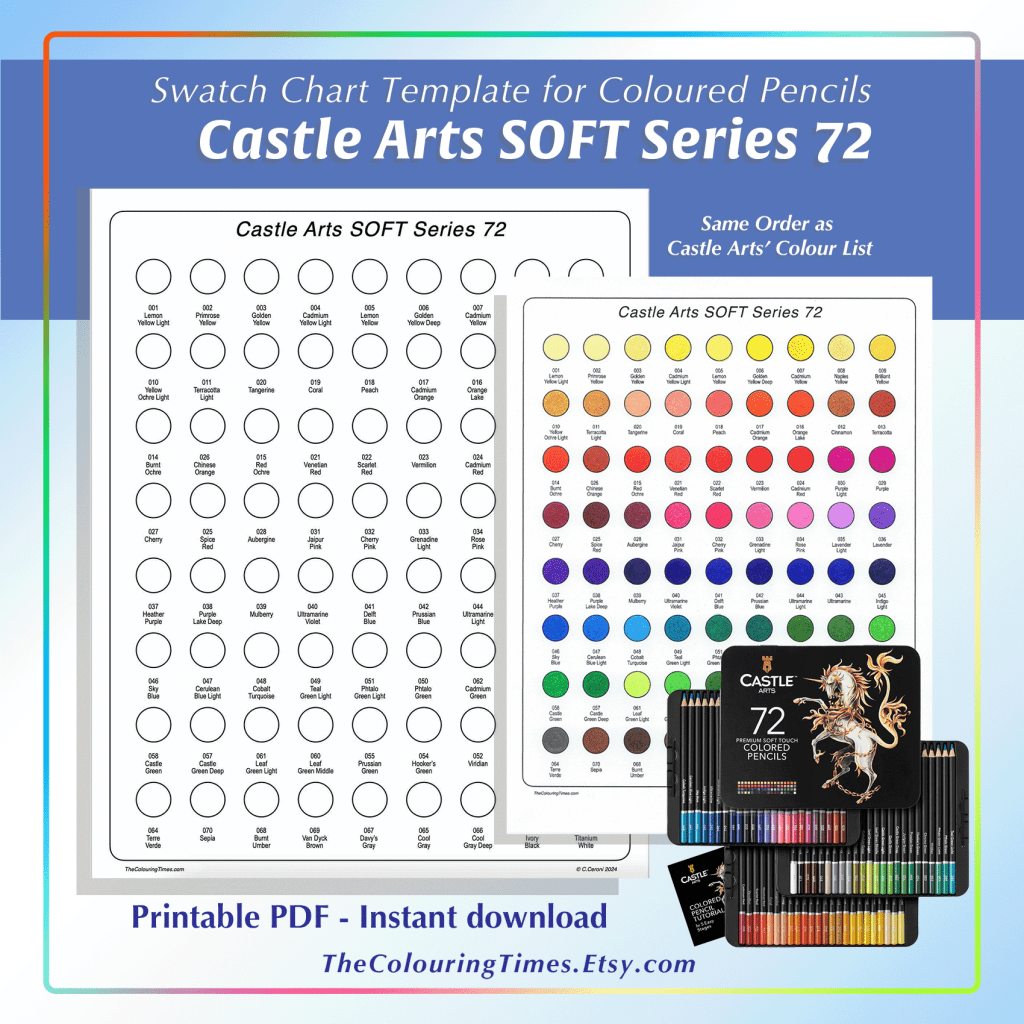 - PDF Swatch Pack for 72 Soft Series Castle Arts Coloured Pencils Set