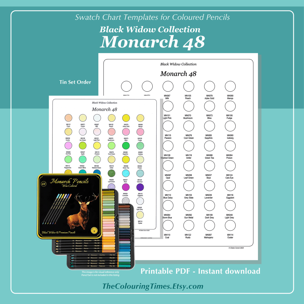 - PDF Swatch Pack for Black Widow Colored Pencils – 48 Monarch Set