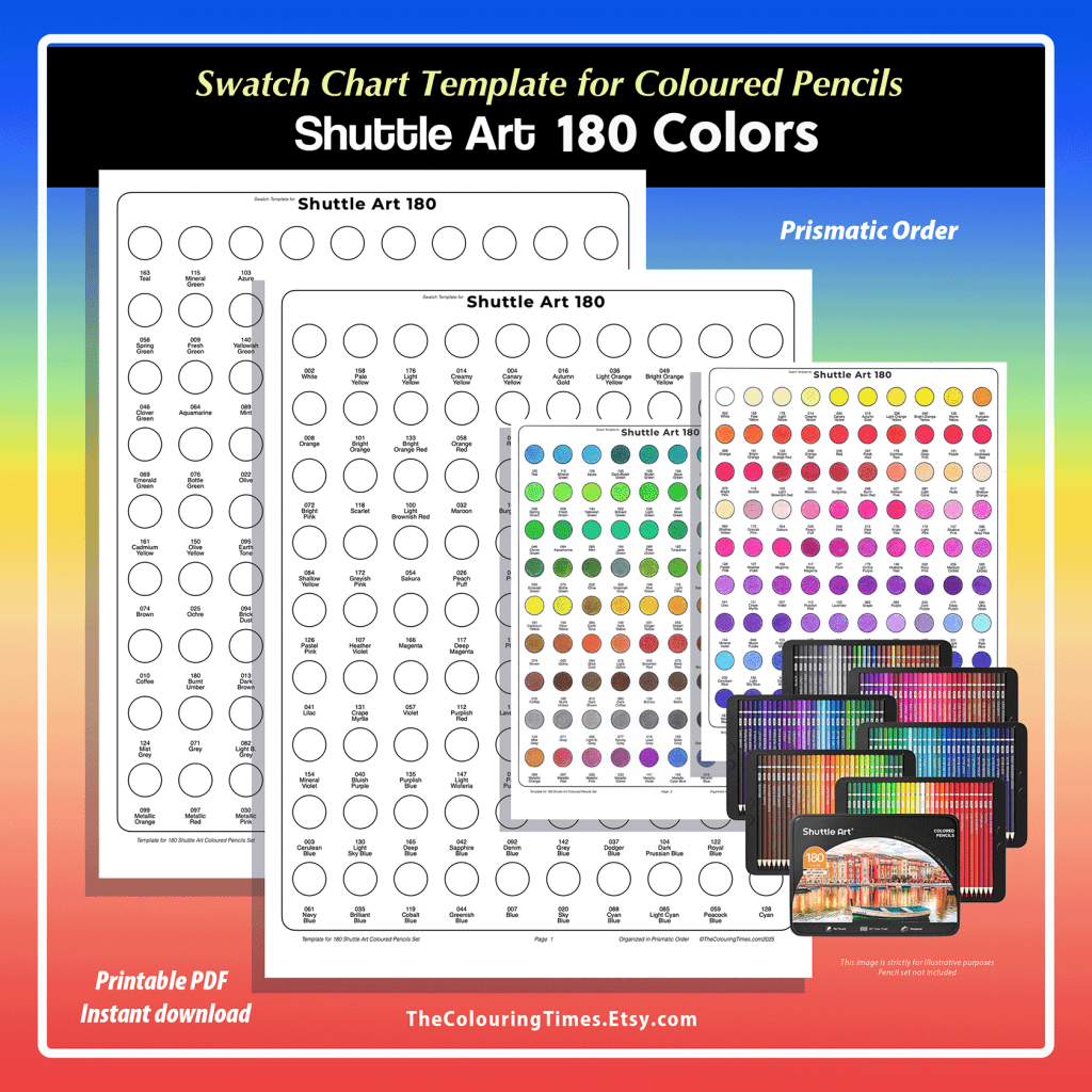 - PDF Swatch Pack for 180 SHUTTLE ART Coloured Pencils Set